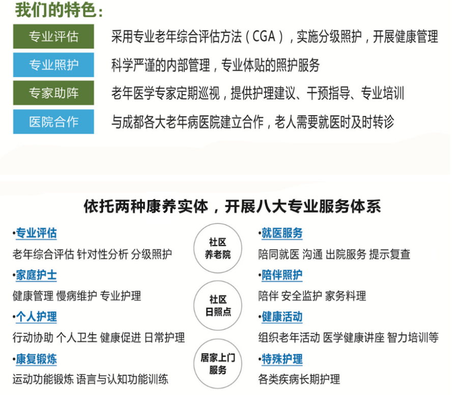 成都怡倍康養(yǎng)老服務有限公司是一家按照“康養(yǎng)結合”模式運營的專業(yè)化養(yǎng)老機構。